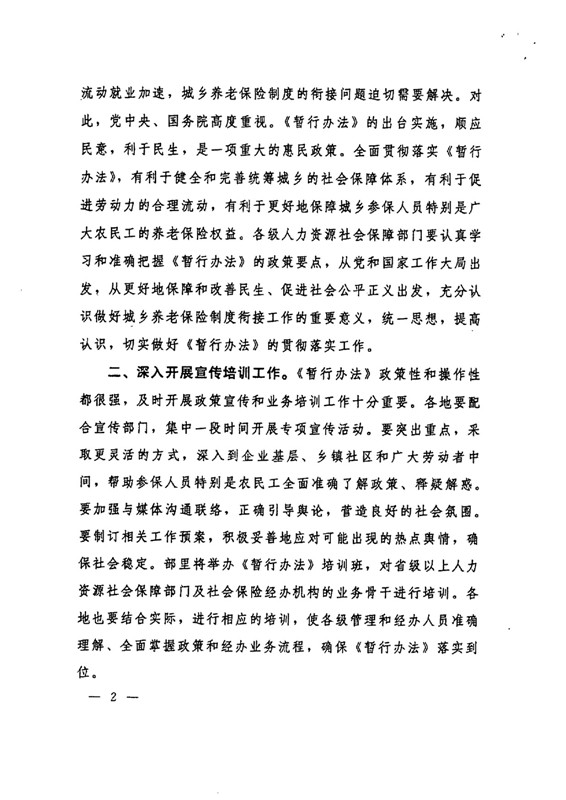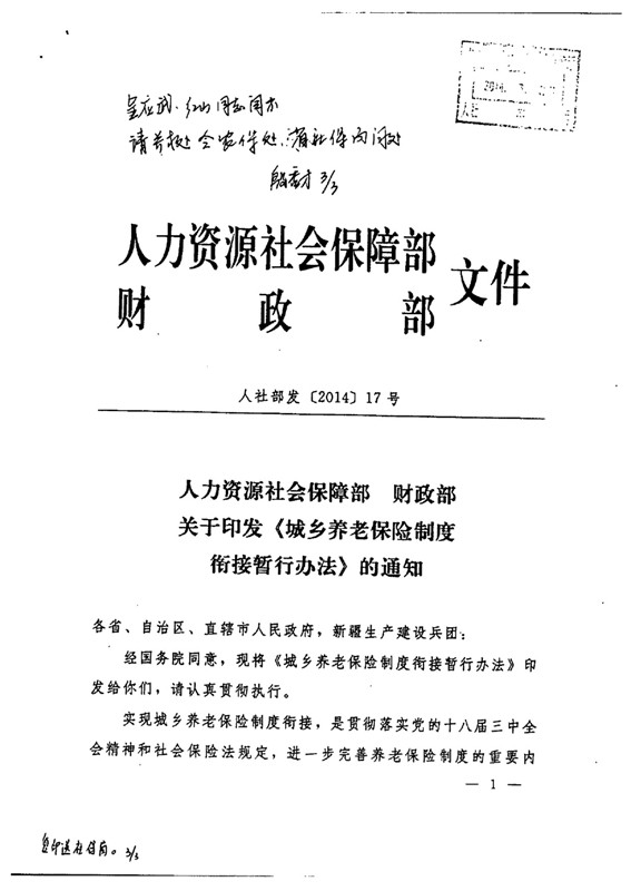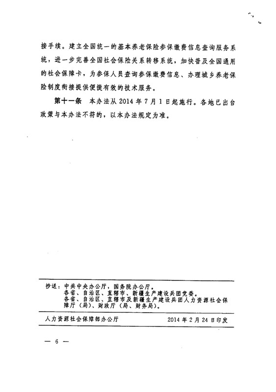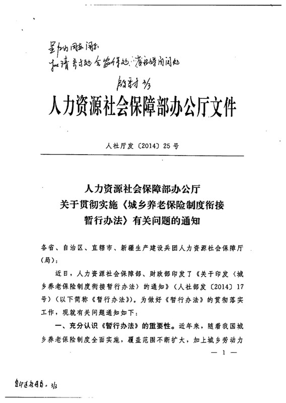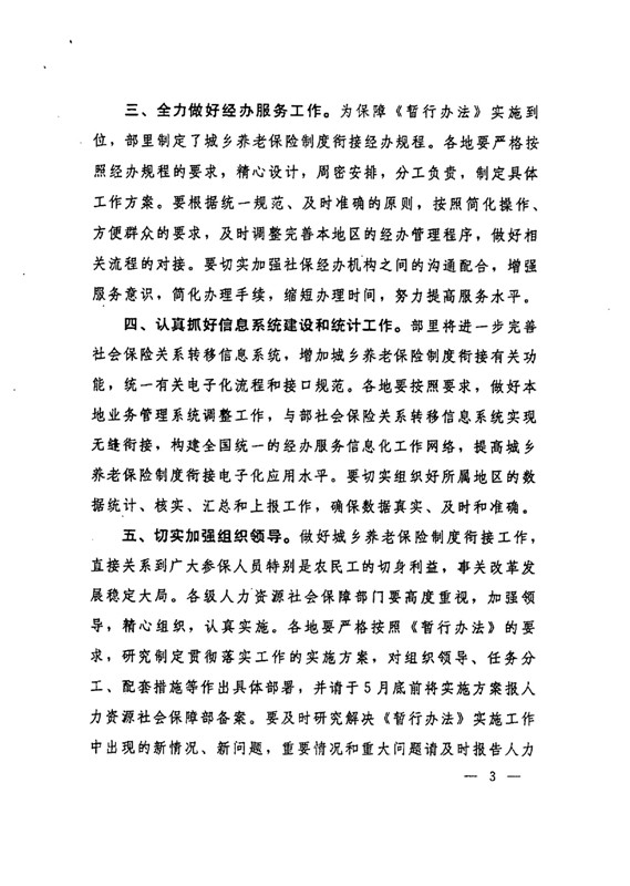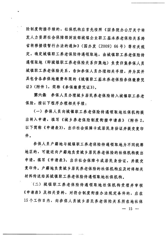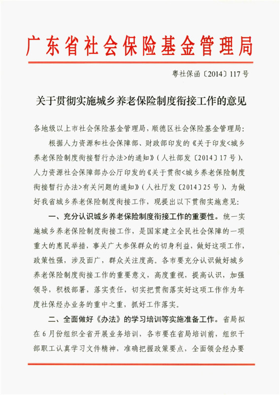 关于贯彻实施城乡养老保险制度衔接工作的意见